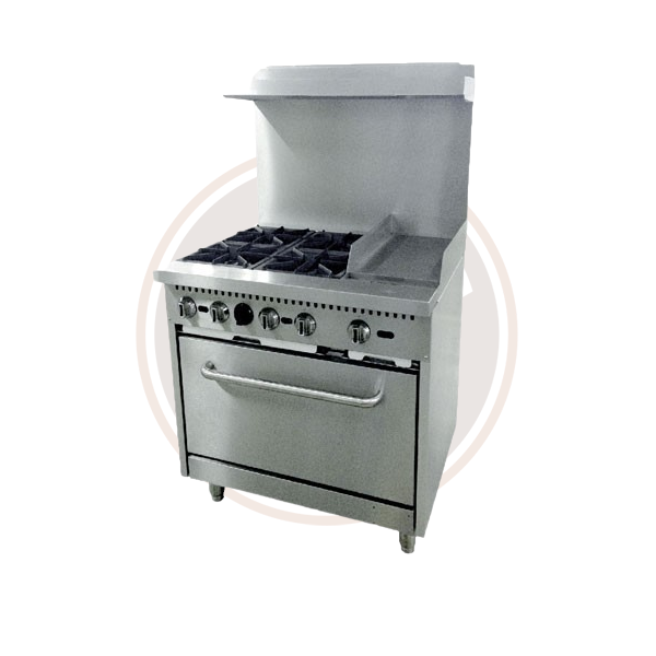 Omcan 36-inch Commercial Natural Gas Range with 4 Burners, 12-inch Griddle, and Oven - 46025