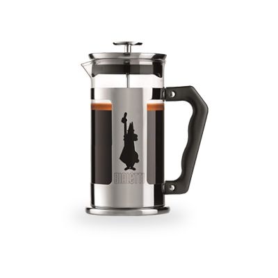 Precious is a coffee press for making delicious filtered coffee, infusions and herbal teas. It has a modern design and exclusive handle that recalls the shape of the Moka Express. The Little Man with the Moustache is stylishly engraved on the 18/10 stainless steel body. The borosilicate glass beaker is dishwasher safe.