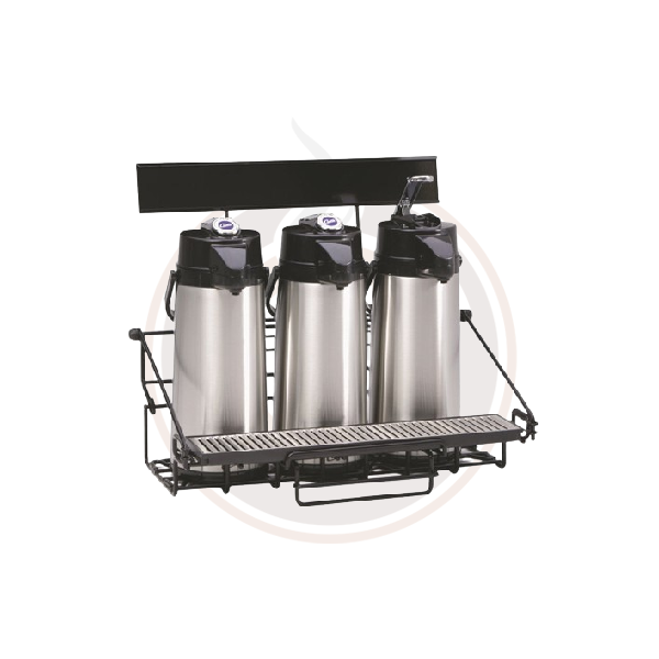 Keep your airpots organized and readily available with the Curtis WR3B0000 black 19" x 23 1/8" three airpot wire rack! This rack is large enough to hold three airpots (sold separately) filled with your most popular coffee, and its durable wire structure makes it conveniently lightweight and easy to clean. Another great benefit of this product is the included drip tray, which ensures your your countertop will stay clean and mess-free throughout the day!