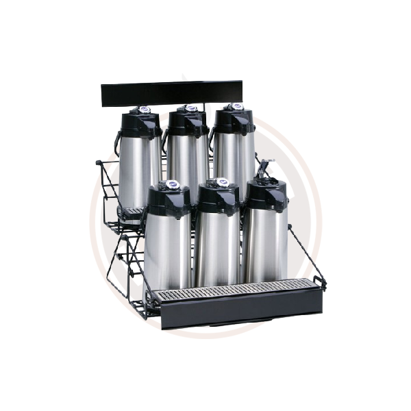 Keep your airpots organized and readily available with the Curtis WR6B0000 black 27 1/2" x 23" six airpot wire rack! This rack is large enough to hold six airpots (sold separately) filled with your most popular coffee, and its durable wire structure makes it conveniently lightweight and easy to clean. Another great benefit of this product is the included drip tray, which ensures your your countertop will stay clean and mess-free throughout the day!