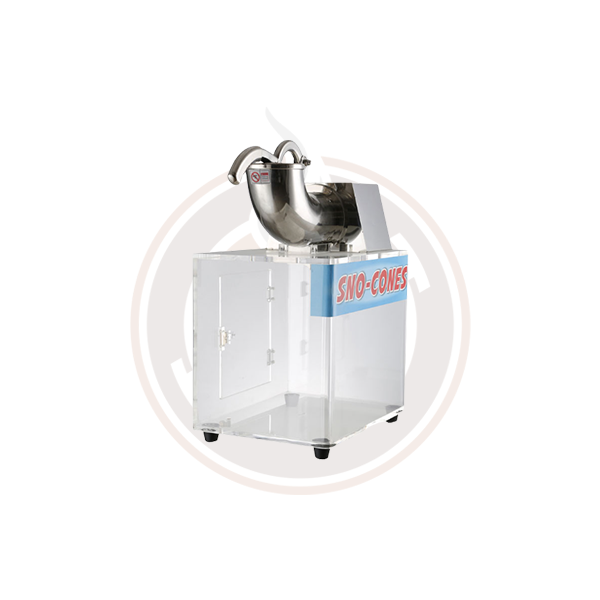 Serve this classic summertime treat with the Sno-Cone Ice Machine. A great machine for carnivals, concessions and events. This sno-cone machine is durable and easy to use, with a stainless steel hopper, easy handle, and a large acrylic box to see the amount of ice being produced. Creating up to 180kg of ice an hour, you’ll be sure to have a constant supply of ice throughout your day.
