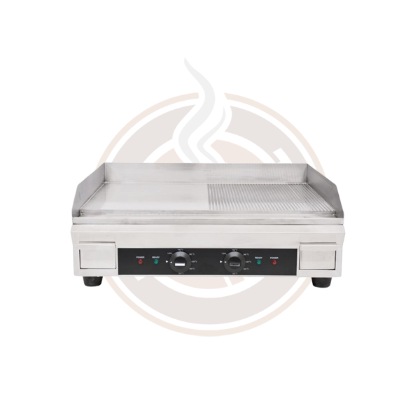Perfect for imprinting sear marks without the need for a separate chargrill. The grooves allow excess fats and oils to run through the drainage channel. This unit features two independent thermostat controls to provide increased flexibility and consistent heat.
