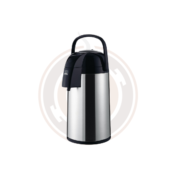 3.0 L push-button style airpot, glass lined, brush stainless finish